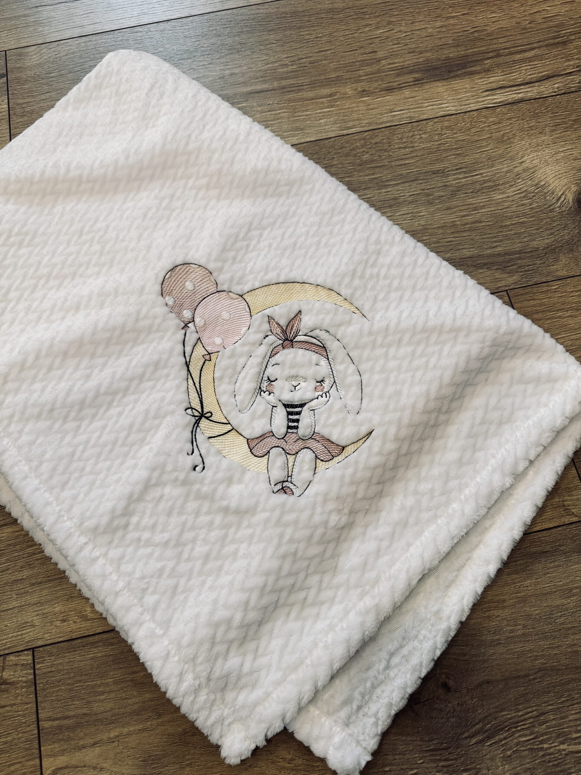 Egyrétegű Babatakaró – Nyuszi lufikkal(halszálka)- ÚJ (fehér )